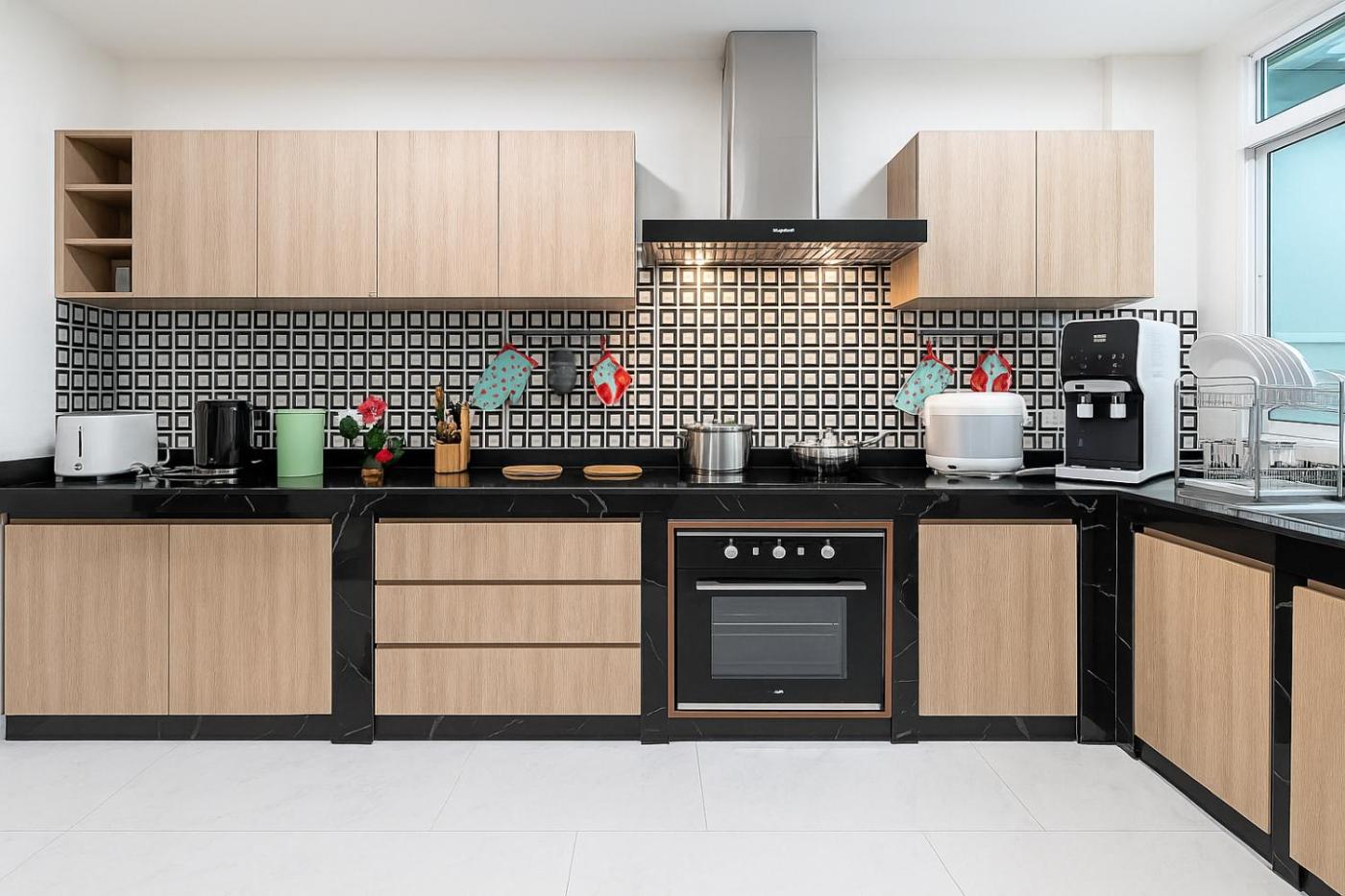 Villa. The spacious villa features 5 bedrooms and 3 bathrooms with a shower and free toiletries. Guests can make meals in the kitchen that is equipped with a stovetop, a refrigerator, an oven and a microwave. This villa is air-conditioned and has a seating area with a flat-screen TV, a washing machine, a dining area, a wardrobe, as well as an electric kettle. The unit offers 6 beds.
