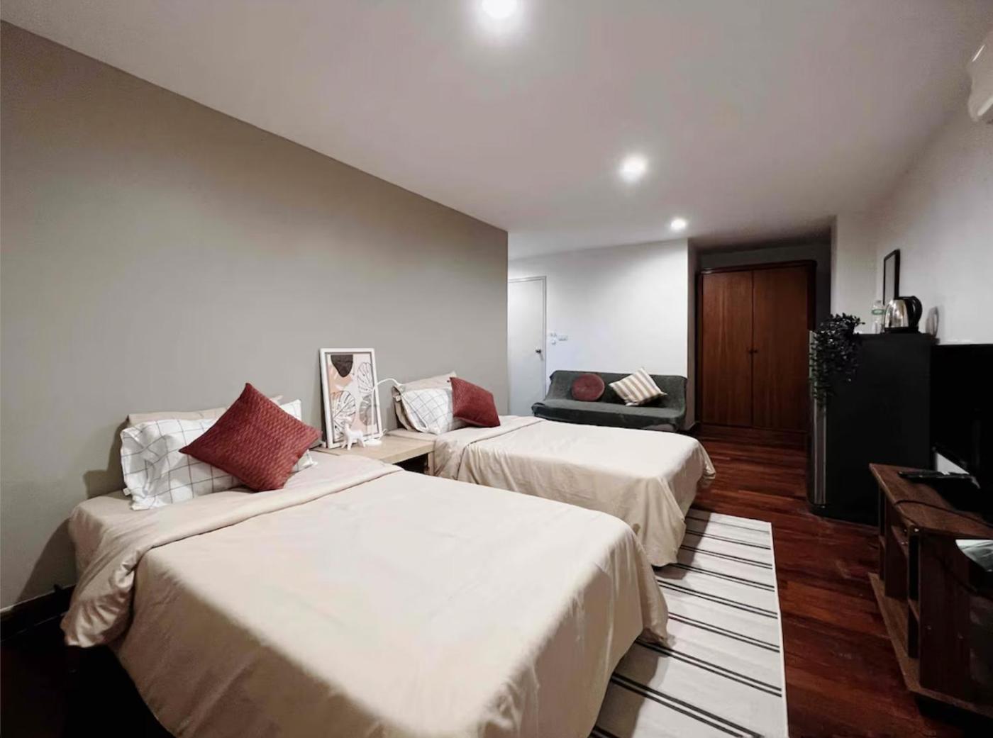 Quadruple Room with Private Bathroom. Providing free toiletries, this quadruple room includes a private bathroom with a walk-in shower, a hairdryer and slippers. Air conditioning, a wardrobe and a carpeted floor are provided in this quadruple room. The unit offers 2 beds. ;
